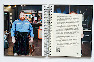 Jedes Portrait wird begleitet von einem kurzen biographischen Text sowie einem Notenblatt mit Akkorden, Liedtexten, Tabs oder Melodien – in vielen Fällen Eigenkompositionen oder eigene Arrangements der abgebildeten Künstler*innen. Ergänzt werden die Noten von QR-Codes, die zu Audio- oder Videoaufnahmen der jeweiligen Songs führen.